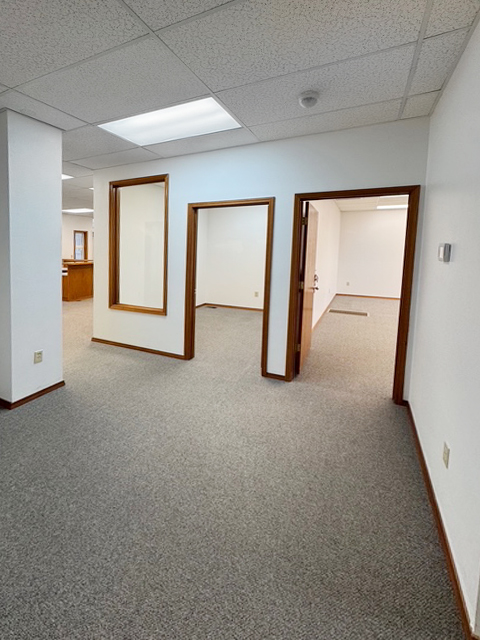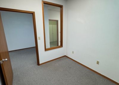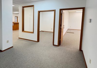 The suite totals 1,423 square feet and includes six private rooms plus a reception area. One private room features a sink and closet, while another is double-sized with a closet, offering added flexibility for different business needs.